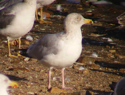 Entre las más de 1.000 de Larus michahellis y unas 100 Larus fuscus localizo un mínimo de 4 Larus argentatus (1 adulto, 1 de 4º invierno/adulto, 1 de 2º invierno y 1 de 3º invierno).